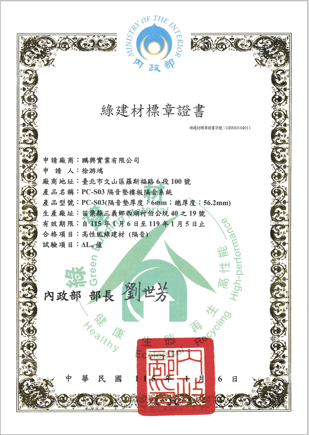 賽倫斯隔音墊 取得綠建材標章!!